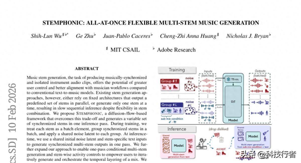 这项由MIT CSAIL与Adobe Research联合开展的研究发表于2026年的计算机声音领域顶级会议,研究编号为arXiv:2602.09891v1。对于想要深入了解技术细节的读者,可以通过这个编号查询完整论文。这个研究团队开发出了一个名为STEMPHONIC的人工智能系统,它能够像一个全能的音乐制作人一样,仅仅根据文字描述就能同时生成多种乐器的音轨,并且这些音轨之间完美同步,仿佛真的有一个乐队在协调演奏。